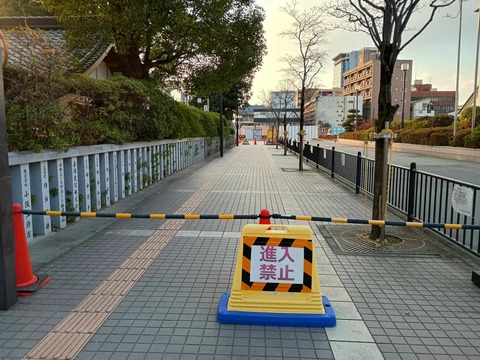 野見町 野見神社の北側の歩道、駐輪場が閉鎖されてる 2026年1月