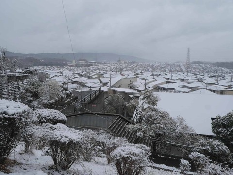 今朝の高槻は雪が積もった 住宅北部と南部のようす 2026年2月8日