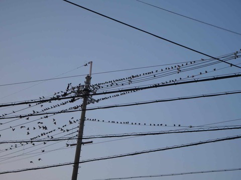 郡家新町の道路沿い 電線に多くのムクドリを見かけた 2026年1月
