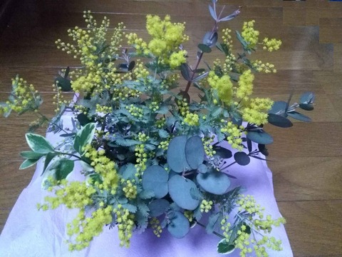 咲いてきたミモザとユーカリでフラワーアレンジメントを作ってみた はたして才能ありか、凡人か?