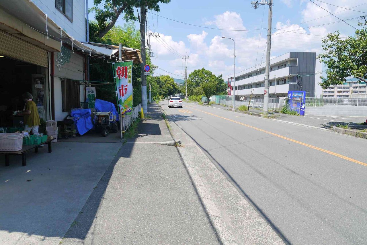 郡家本町の朝市のお店に行った時に少しお話を聞きました。この朝市は火、木、土に開いているようです。当日も安くて新鮮な野菜がたくさん。ここで昔の線路の話を少しだけお聞きしました。鉄橋を渡ったトロッコ列車は砕石場であった現在の二中の奥に向けて、芥川沿いを通っていたようです。