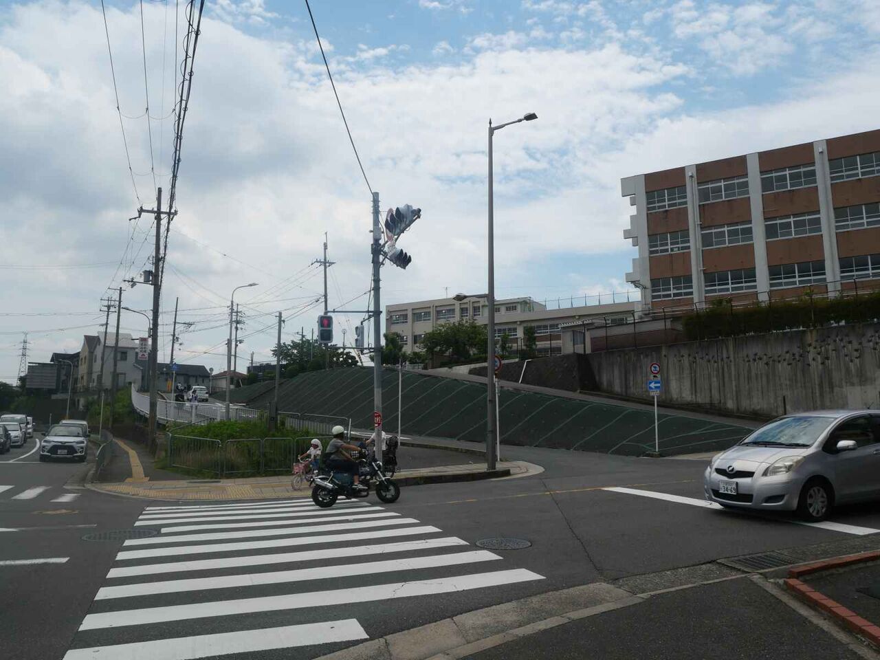 ここから二中に向けては西側は段差があって、さらに当時はこの前の川沿いの道はありませんでしたので、
