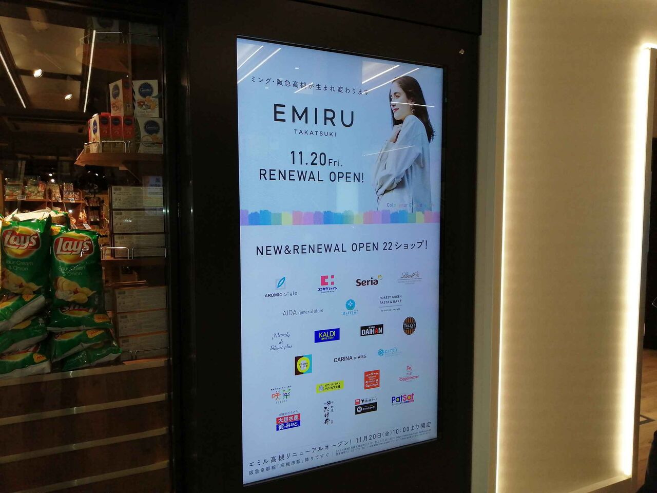 おそまきながらの投稿ですが、ミング阪急高槻は工事のあと、エミル高槻となり、11月20日にニューアルオープンのようです。サイトを拝見すると、