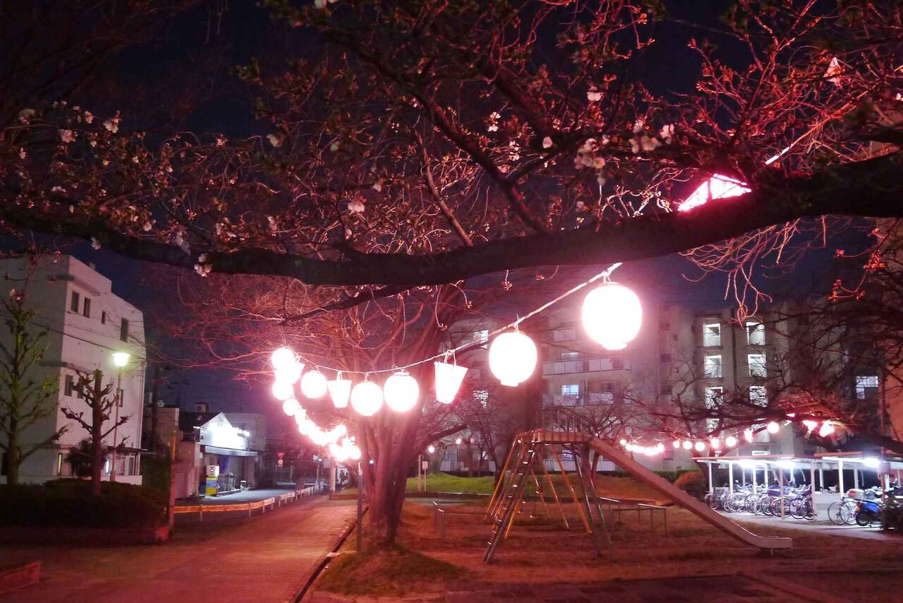 プレンティ柱本のスーパーの裏手です。ちょうど桜が昨日に開花してきたため絶妙なタイミングです。明かりの準備は先週からあったのですが開花と合わせての写真が撮れました。これから満開になってくるまで楽しみです。