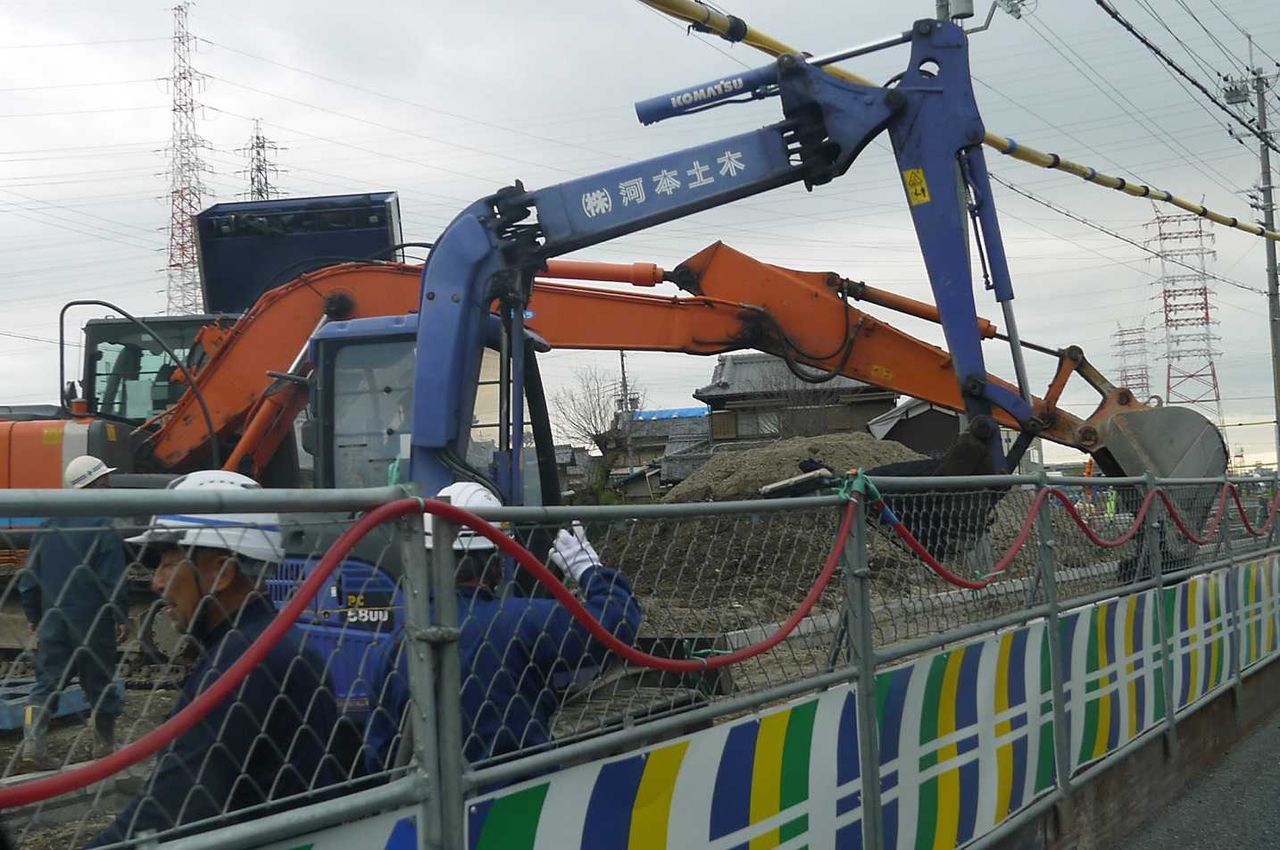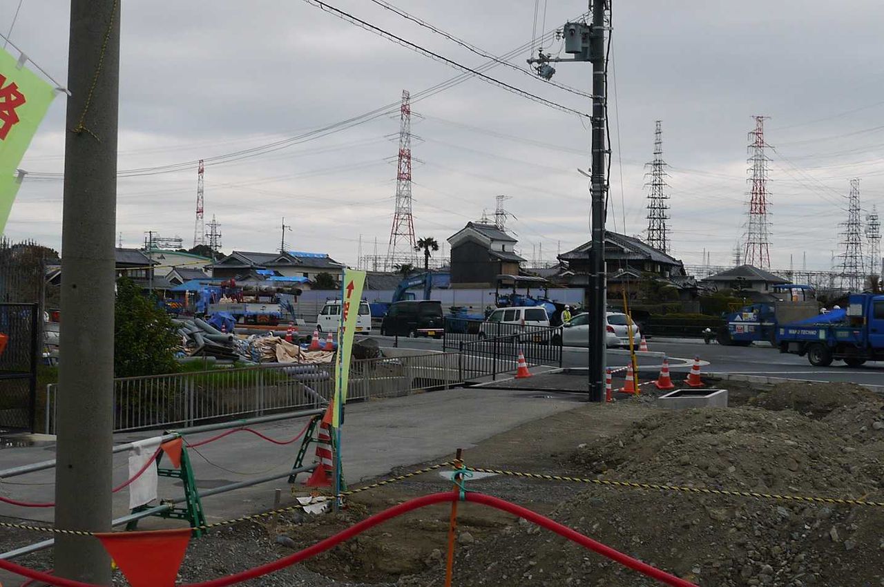 左が国道側で相当工事に力が入っています。。