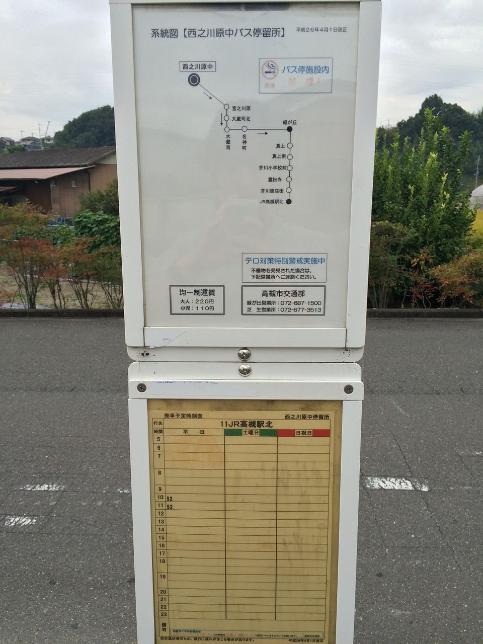 直感で「高槻市営バスで一番本数が少ない」と思いました。