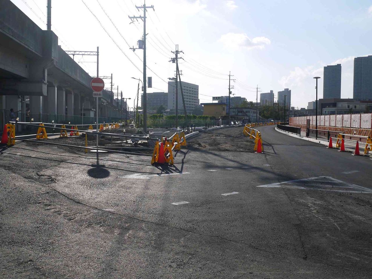 一方で予想外に進んでいるのは旧農場の入り口から東側阪急の高架下の道路です。西側の道路の状況に迫る勢いで進んでいます 一方で西側は、、