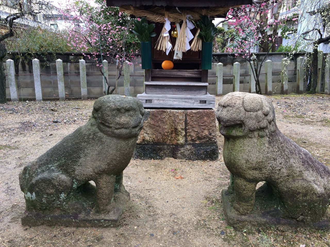 拝殿の右奥に居た狛犬たちです。