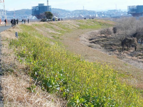高槻の上牧から島本町の淀川堤防沿い 早くもセイヨウカラシナが咲き始めてる 2024年