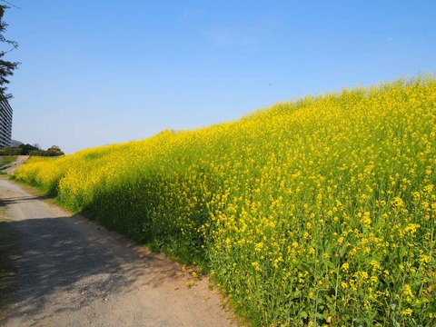 高槻の上牧から島本町の淀川堤防沿い セイヨウカラシナが満開になってる 2023年