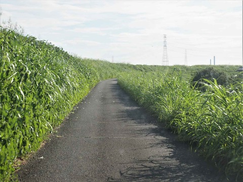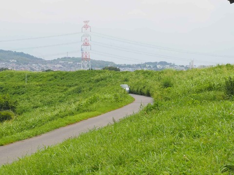 この夏場上牧の淀川堤防沿いは草が生い茂って、車幅ぎりぎりになってる