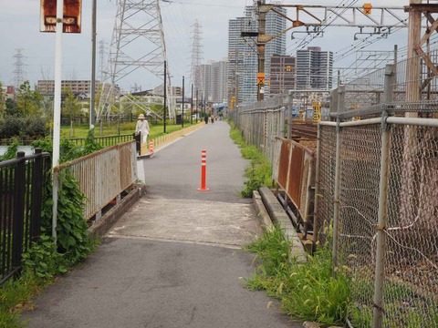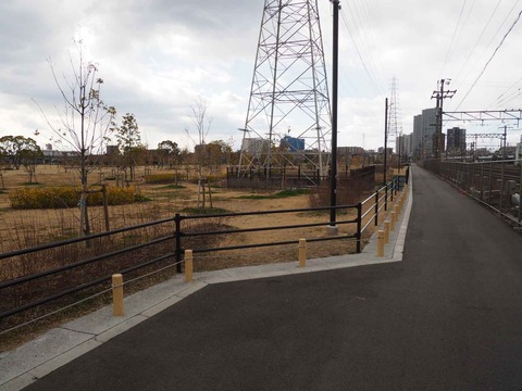 安満遺跡公園北側 園内から踏切にすぐ近づけないような柵ができてる