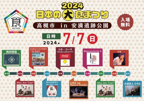 安満遺跡公園 日本の食まつりのイベントが今日に続き明日7日(日)も開催 2024年7月