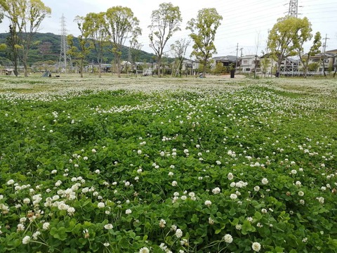 安満遺跡公園 東側のシロツメクサのお花畑がすごい