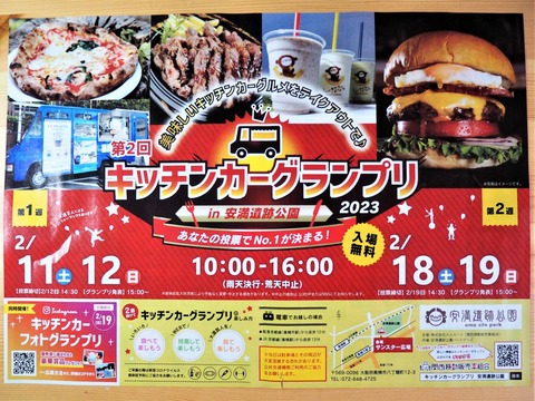 第3回 キッチンカーグランプリ 20日と21日、27日と28日に安満遺跡公園にて開催予定 2024年1月 昨年のようすも