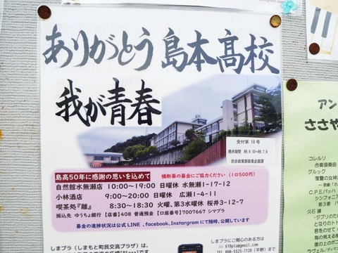 来年度統合により50年の幕をおろす大阪府立島本高等学校 横断幕の募集ポスターがあった 2024年