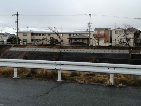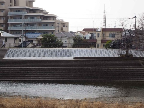 芥川桜堤 西側遊歩道沿いの芥川橋近く のり面工事のようす 2024年2月27日時点