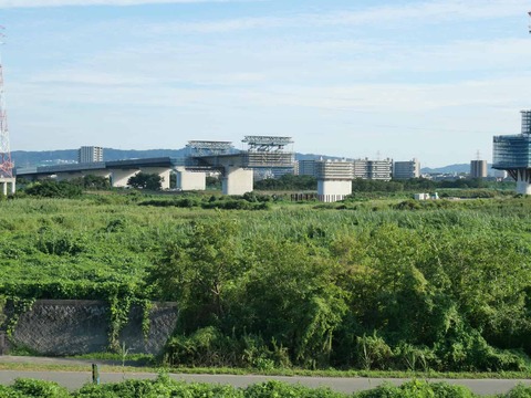 新名神淀川橋工事 上牧の橋脚工事近くのようす 今後橋梁はどのように置くのか? 2023年9月