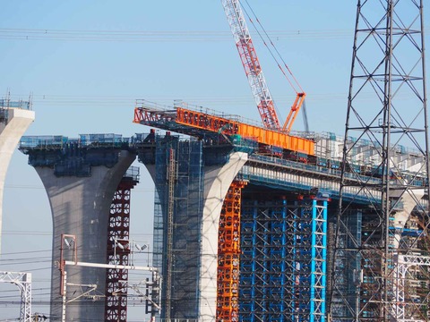 新名神淀川橋工事 国道171号線付近 年末年始の橋梁工事のようす 2024年1月