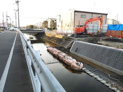 川添公園の南側 高槻市消防本部中消防署の富田分署の工事 水路沿いの取水構工事ができてきた 2023年12月