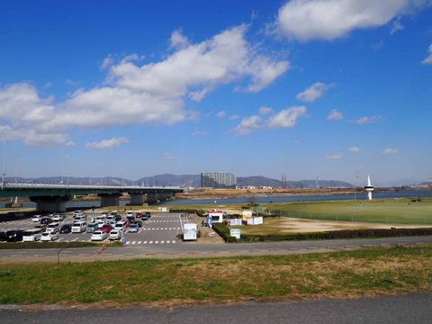 枚方の淀川河川公園を散策してみる 東側の高槻を見渡す河岸で木の伐採工事がなされてる 2024年3月