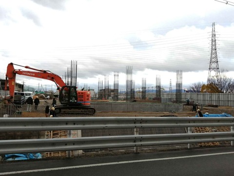新名神淀川橋工事 上牧の橋脚工事 国道171号沿いの橋梁 西国街道付近のようす 2024年3月