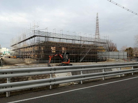 川添公園の南側 高槻市消防本部中消防署の富田分署の工事 建物本体工事が始まった 2024年1月31日
