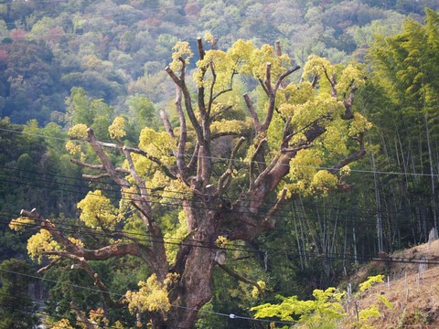 西国街道の一乗寺の大クスノキ 大きな枝が大幅になくなった 新名神淀川橋工事 2024年4月