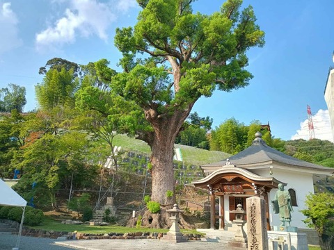 西国街道の一乗寺の大クスノキ 枝が剪定されて1年と少ししたようす 新名神淀川橋工事 2025年8月