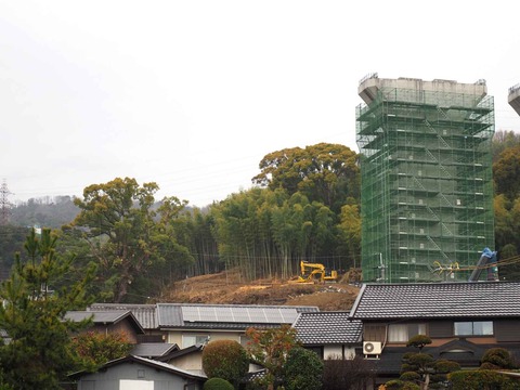 新名神淀川橋工事 上牧付近の橋脚工事近くのようす 2023年1月