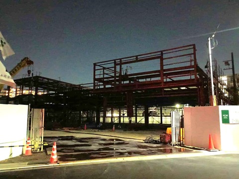 津之江町一丁目 ドラッグストアコスモスの工事 建物の骨格ができてきた 2025年10月