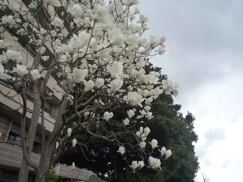 ハクモクレンが満開!街かどに白い花があちこちに 2018年