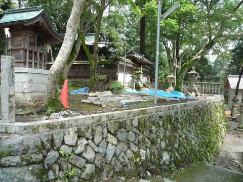 原の八坂神社 境内が工事されてる