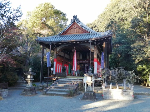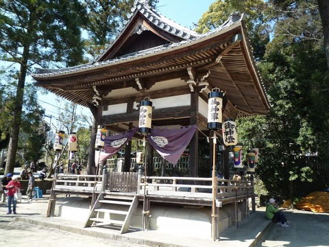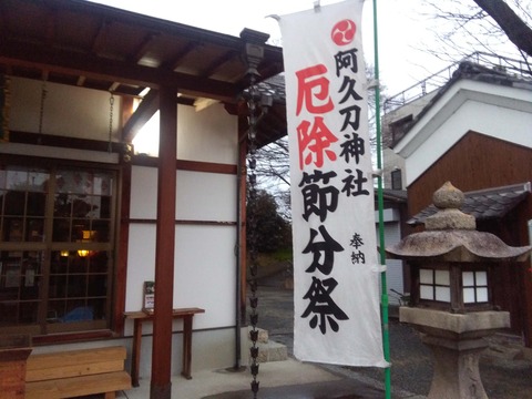 阿久刀神社で節分祭の準備、夫婦梅も少し開花?