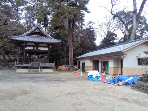 原にある八阪神社の社務所がほぼ完成している