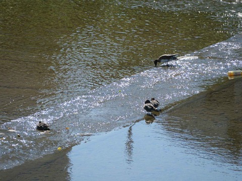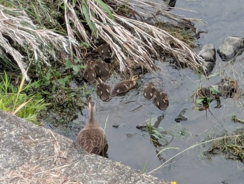 高槻の氷室川で見かけたカルガモくん親子 お母さんが見守ってる 2025年5月