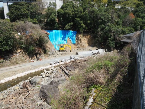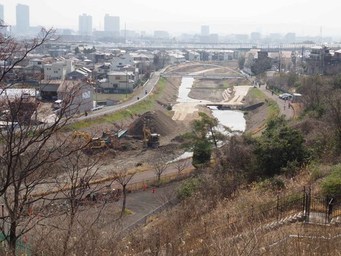 芥川 大蔵司付近で河床工事がされてる 2024年3月