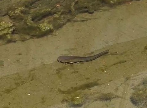 高槻の街かど 水路で見かけた ナマズくん? 2024年