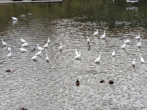 芥川の門前橋付近 コサギくんたちがカモくんたちと集まってた 2024年12月21日