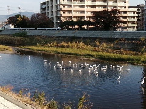 芥川にコサギがたくさん集まってる 2023年11月7日