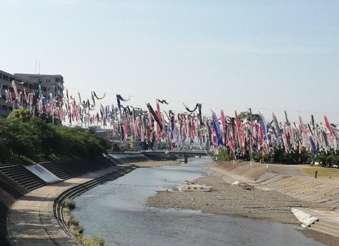 高槻の芥川 こいのぼりが泳ぎ始めた 2024年4月21日
