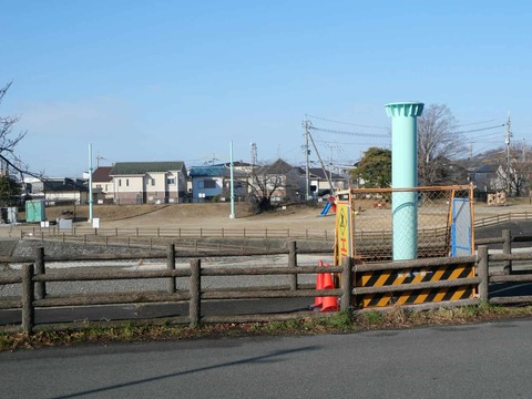 芥川の桜堤付近 こいのぼりを吊るす支柱の塗装工事がなされている