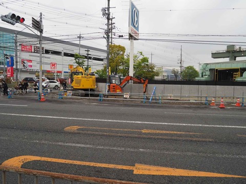 国道171号線 富田丘町交差点東側 酉島(とりしま)製作所の拡幅箇所の追加の工事がなされている