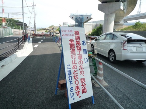橋梁架設工事のため全面通行止め、数分間でよいの?