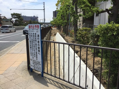 大阪医科大学の横の歩道が拡幅工事されるみたい