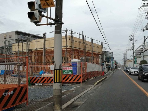 大蔵司3丁目 飲食店舗の建物 工事の囲いがなくなった 2021年8月