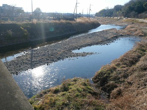今日の高槻は氷点下の朝だった。芥川の西之川原橋付近も凍ってた 2025年2月6日