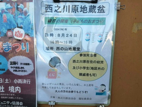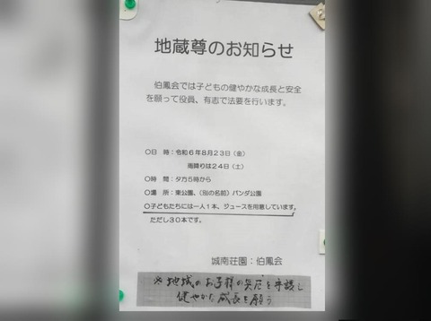 高槻の地蔵盆 モリタ屋富田店のちびっ子地蔵盆は23日(金)にあるよう 2024年8月