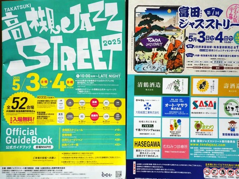 高槻ジャズストリート・富田ジャズストリート 今日5月3日と明日4日に開催! 2025年 昨年の各地のようすも