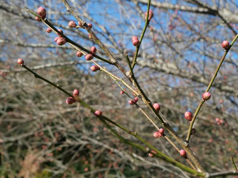 高槻の梅 開花までもう少し 西之川原橋近くの梅 2025年